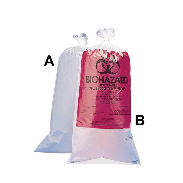 Biohazard Disposal Bag, 15 to 20 gal, 36 H x 24" W, Clear, Polypropylene, 1.5 mil Thickness, Biohazard Symbol with Sterilization Patch, High Temperature Autoclavable, with Warning Label, Plain, Non-Printed, Disposable