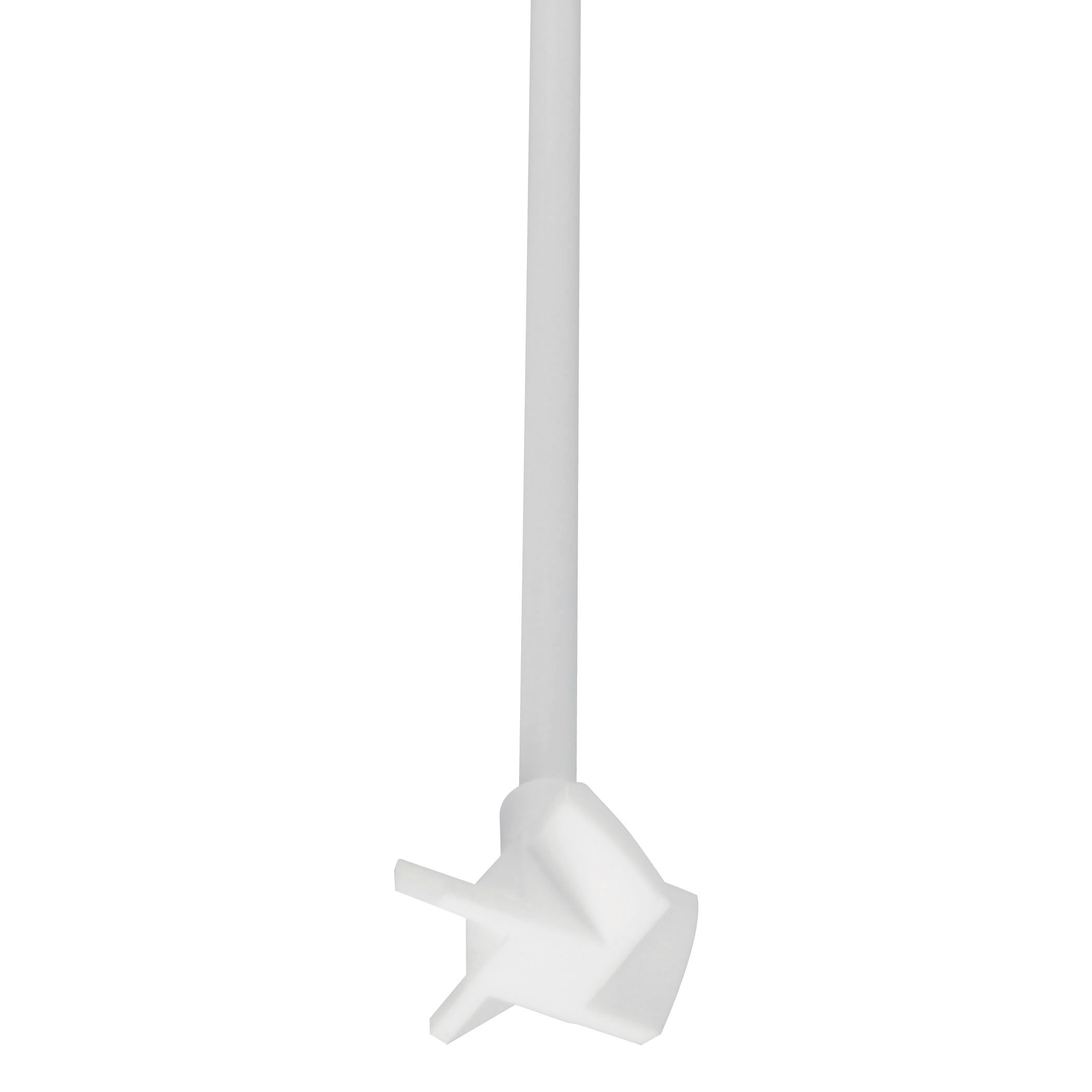 An axial flow PTFE impeller for high speed, low viscosity mixing. With 45° pitched blades, the 40 mm (1.5") dia impeller is attached to an 8 mm (0.3125") dia PTFE-coated shaft. The stainless steel core of the shaft provides stability. PTFE (polytetrafluoroethylene) can be used under the most adverse conditions. This high performance coating is insoluble, non-contaminating and has exceptional thermal-resistance. It is easy to clean, does not scratch other surfaces and is unbreakable.