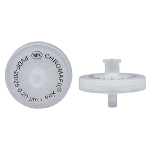 Disposable syringe filters Chromafil® are ready-to-use filtration units, which are filter elements incorporated in a polypropylene housing. Because every filter is only used once, contaminations are avoided. Syringe filters are used for filtration of suspended matter from liquid samples or gases. With Chromafil®, rapid purification and removal of particles is very simple: Just place the filter on the syringe, and you are ready for filtration. Special manipulations are not required. Contamination of sensitive instrumentation by solid impurities can be avoided, thus increasing lifetime of chromatographic columns and equipment.