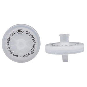Disposable syringe filters Chromafil® are ready-to-use filtration units, which are filter elements incorporated in a polypropylene housing. Because every filter is only used once, contaminations are avoided. Syringe filters are used for filtration of suspended matter from liquid samples or gases. With Chromafil®, rapid purification and removal of particles is very simple: Just place the filter on the syringe, and you are ready for filtration. Special manipulations are not required. Contamination of sensitive instrumentation by solid impurities can be avoided, thus increasing lifetime of chromatographic columns and equipment.