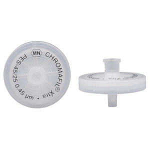 Disposable syringe filters Chromafil® are ready-to-use filtration units, which are filter elements incorporated in a polypropylene housing. Because every filter is only used once, contaminations are avoided. Syringe filters are used for filtration of suspended matter from liquid samples or gases. With Chromafil®, rapid purification and removal of particles is very simple: Just place the filter on the syringe, and you are ready for filtration. Special manipulations are not required. Contamination of sensitive instrumentation by solid impurities can be avoided, thus increasing lifetime of chromatographic columns and equipment.