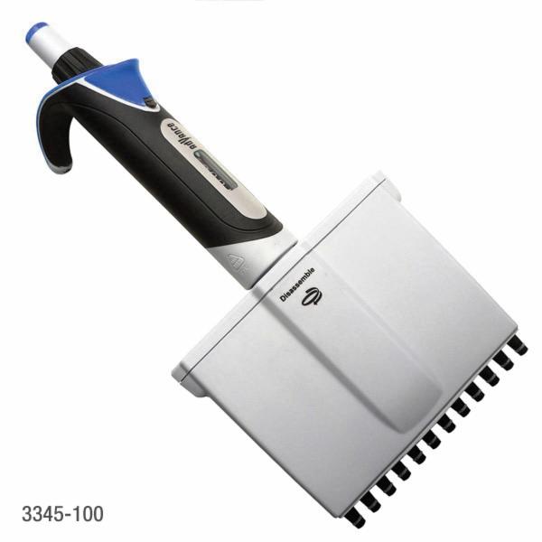 Pipette, 10 to 100 µl, Blue, 0.1 µl Increments, 12-Channel, Adjustable Volume, B Tip Group, Fully Autoclavable, Calibrated, Light-weight and Ergonomic Design, Tip Ejector, 360° Rotating Manifold