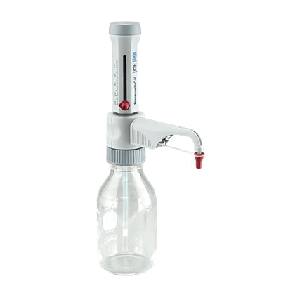 Bottletop Dispenser, 0.5 to 5 ml, Red, =±0.5% (25 µl) Accuracy, 0.1 ml Increment, =0.1% (5 µl) Imprecision (CV%), Analog Display, Adjustable, Autoclavable, Polypropylene Adapter, Without Recirculation Valve