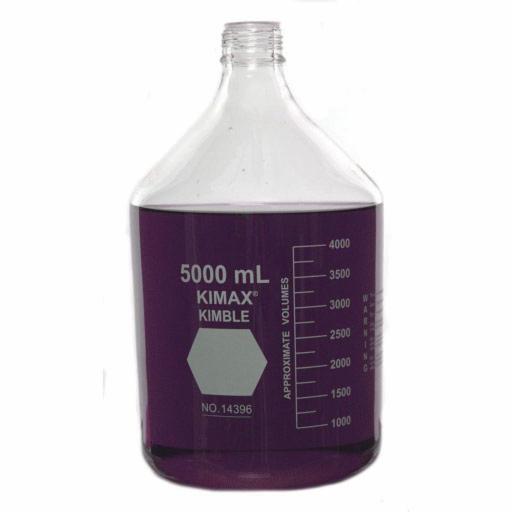 Media Bottle, 5000 ml, 181 OD x 330 mm H, Clear, Borosilicate Glass, GL 45, Narrow Mouth, 250 ml Graduation Interval, 1000 to 4000 ml Graduation Range, Autoclavable, Chemically Resistant, Graduations and Marking Spot