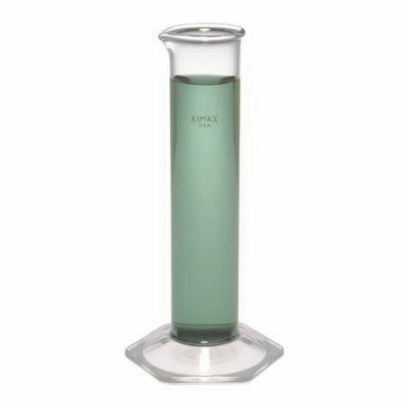 Hydrometer Cylinder, 600 ml, 375 mm H, Borosilicate Glass, 47.9 ID x 52.2 mm Nominal OD, 1.5 mm Wall Thickness, Pour Spout, Ungraduated, With a Hexagonal Base Flat Ground for Stability