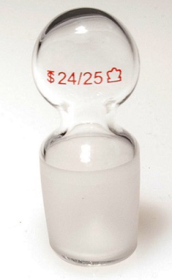 Stopper, Medium Length, 25 mm L, Borosilicate Glass, 24/25 Standard Taper Joints, Hallow Pennyhead Style, Used for Laboratory Glassware Such as Flasks, Mixing Cylinders and Separatory Funnels