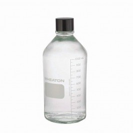 Media Lab Bottle, 1000 ml, 103 dia x 235 mm H, Clear, Borosilicate Glass, 38-430 Closure Size, Black Phenolic Closure, Rubber Liner, Graduated with Marking Patch, Autoclavable