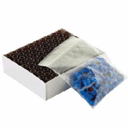 DWK Life Sciences (Wheaton) LVI™ Vial Convenience Packs, Contains 12 x 32 mm Screw Top with 9 mm DWK Life Sciences (Wheaton) LVI™ Screw Cap, 100 Clear with Patch Glass DWK Life Sciences (Wheaton) LVI™ Vials and 100 Blue Polypropylene DWK Life Sciences (Wheaton) LVI™ Caps with Red PTFE/White Silicone Liners