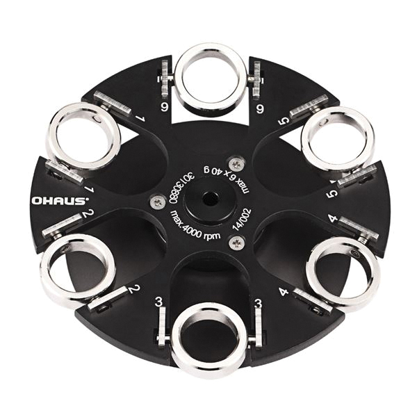 Rotor, 6 x 5 ml, Aluminum, R-S6x5/4 Model, 4000 rpm Maximum Speed, 1817 x g Maximum RCF, 14 mm Tube Diameter, 105 mm Outer/Inner Radius, Swing Out Rotor Style, 0 to 90° Angle, 75 mm Maximum Loading Height, 240 g Maximum Loading Weight