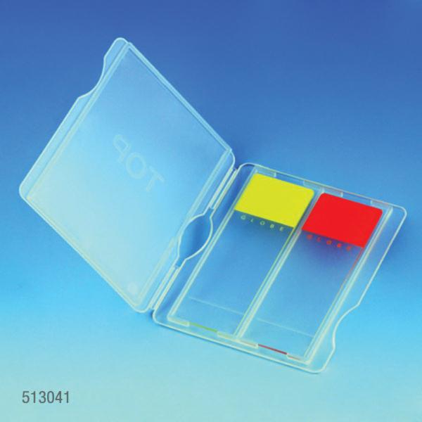 The flat plastic slide mailers are produced from polypropylene (PP) and feature a snap-close lid to keep slides secure during transport.