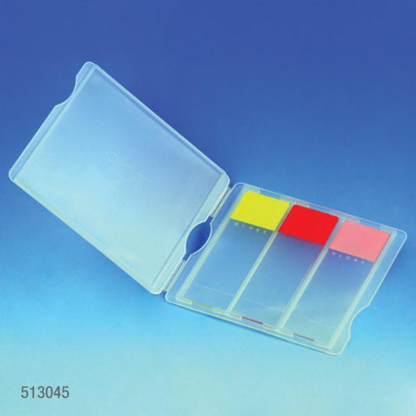The flat plastic slide mailers are produced from polypropylene (PP) and feature a snap-close lid to keep slides secure during transport.