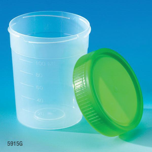 Urine Collection Container, 4 oz, 56.8 x 72.5 mm, Polypropylene, Polyethylene Cap, 61 mm Cap, Graduated, With Separate 1/4-Turn Green Screwcap, Non-Sterile, Use in Physician's Offices and Hospital Settings
