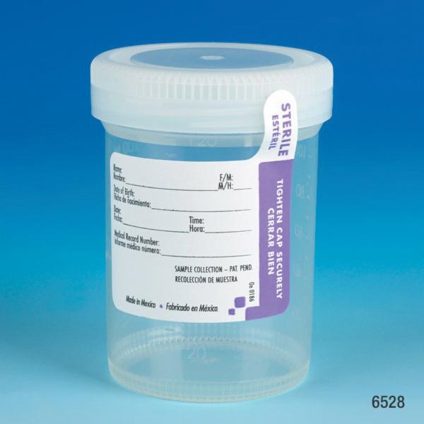 Urine Collection Container, 4 oz, Polypropylene, With Attached White Screw Cap, Patient ID Label with Tab Seal, Tite-Rite, Graduated, Sterile, Leak-tight Storage and Transport of Liquids