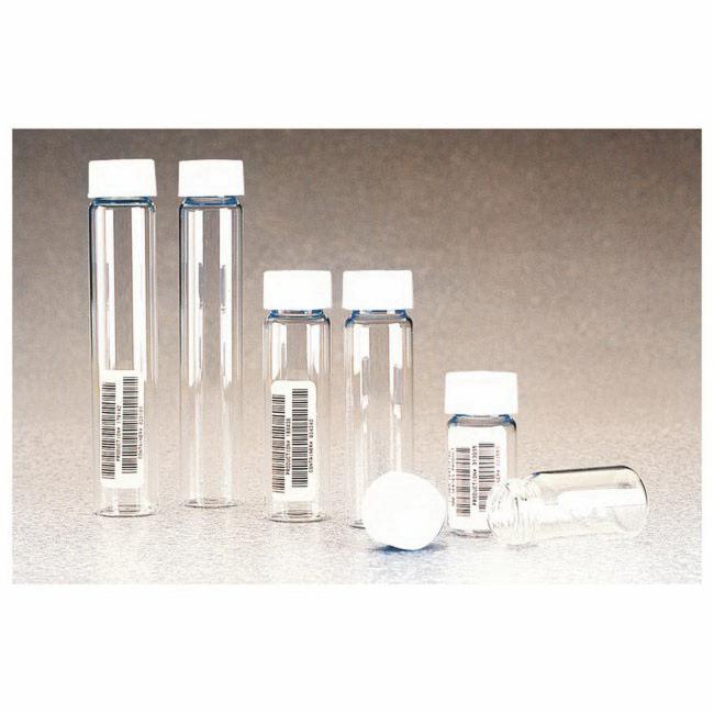 Vial, 20 ml, 28 OD x 57 mm H, Clear, Borosilicate Glass, 24-414 mm Closure, White Polypropylene Open-top Cap with PTFE-faced Silicone Liner, Certified Level, 23.5 ml Brim Volume, 0.125" Unbonded Septum, For Volatile Organic Analysis