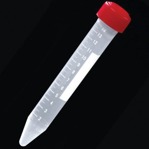 Centrifuge Tube, 15 ml, 17 dia x 120 mm H, Polypropylene, 10000 RCF Spin Rate, Sterile, Marking Spot, Printed Graduation, With Attached Red HDPE Cap