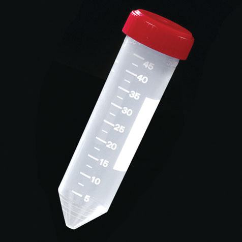 Centrifuge Tube, 50 ml, 29.5 dia x 114 mm H, Polypropylene, 10000 RCF Spin Rate, Sterile, Autoclavable, Marking Spot, Printed Graduation, With Attached Red HDPE Screw Cap