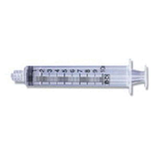 Tuberculin Syringe, 10 ml, Translucent Barrel, Black Markings, Translucent Plunger, Plastic, Luer Lock Tip, Flat Top Style, 0.2 ml Graduation, Sterile, Disposable, Single Use Only, Concentric Tip Orientation