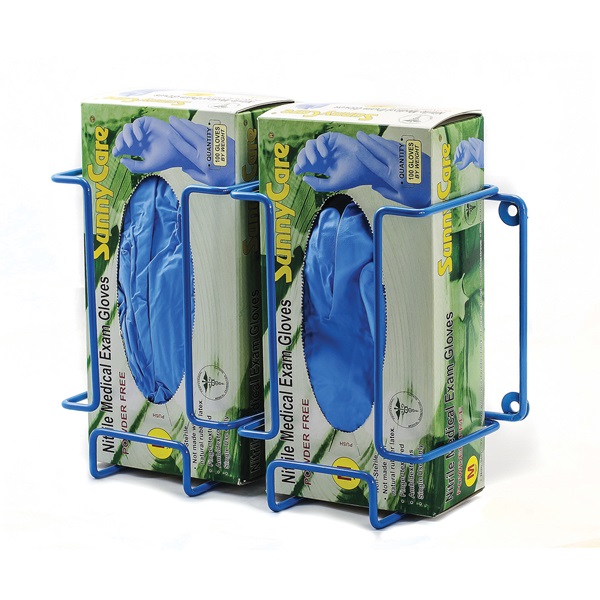 Glove Dispenser Rack, 30.5 L x 10.8 W x 21 cm H, Blue, Epoxy-coated Steel, 12.7 W x 9.5 cm D Internal Compartment, Autoclavable, Double Box Holder, Designed For Mounting to a Vertical Surface, Durable, Keep Disposable Gloves Handy