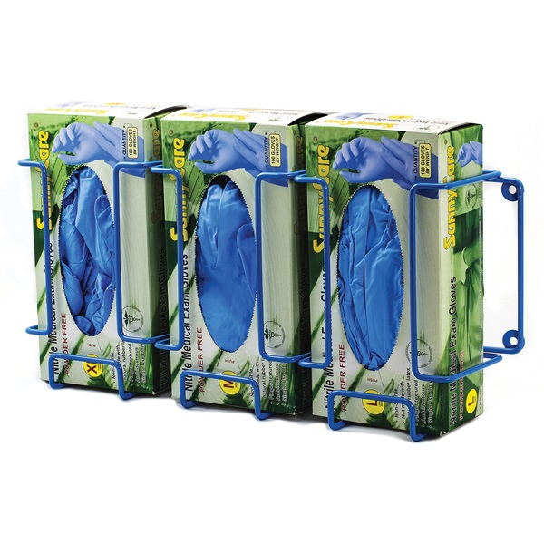 Glove Dispenser Rack, 43.2 L x 10.8 W x 21 cm H, Blue, Epoxy-coated Steel, 12.7 W x 9.5 cm D Internal Compartment, Autoclavable, Triple Box Holder, Designed For Mounting to a Vertical Surface, Durable, Keep Disposable Gloves Handy