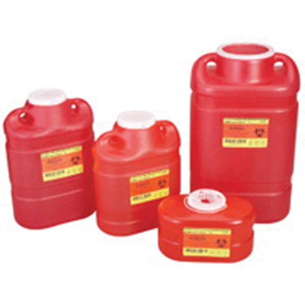 Sharps Collector, 6.6 L, 11.5 x 9.4 x 5.3", Red, Hinge Cap, One-piece, Multi-use, Has Universal Biohazardous Symbol
