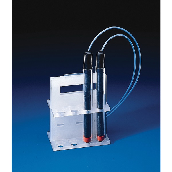 Handy rack holds 8 test tubes for storing and conditioning pH and ion electrodes.
