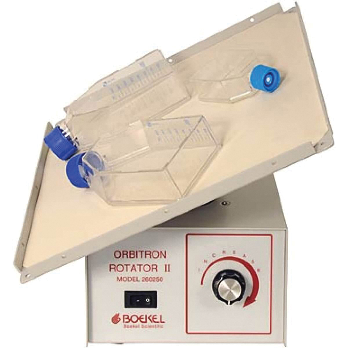 The Boekel Scientific orbitron II laboratory mixer, adjustable speed nutating mixer, is excellent for any application requiring a gentle, low foaming lab agitation. The unit has adjustable speed and is supplied with one white, non-slip dimpled mat and one white, non-slip fat mat.