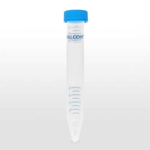 Falcon® 15 mL high-clarity polypropylene (PP) conical centrifuge tubes have a 12,000 RCF rating. The tubes come with polyethylene dome seal screw caps. The sterile tubes are packaged 50 per bag and 500 per case. RNase/DNase-free.
