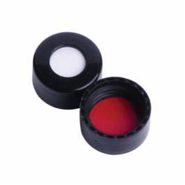 ABC Screw Cap, Black, Polypropylene, 9 mm Size, With Red PTFE/White Silicone Liner, Low Extractable Septa, For ABC Vials
