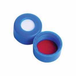 ABC Screw Cap, Blue, Polypropylene, 9 mm Size, With Red PTFE/White Silicone Liner, 0.005" PTFE and 0.035" Silicone, Low Extractable Septa, For ABC Vials