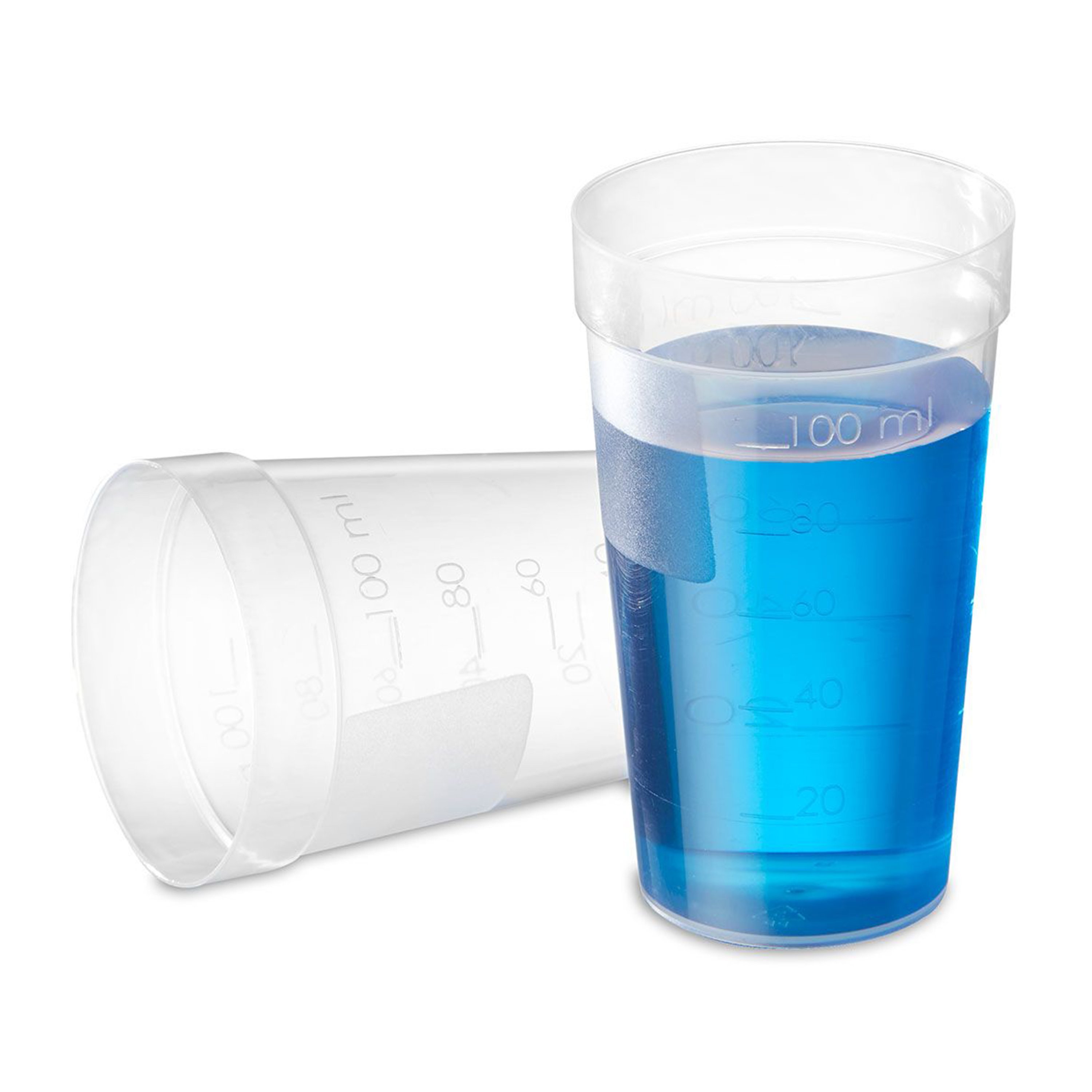 Titration Cup, 100 ml, Polypropylene, Graduated in 20 ml Increments, Gradutions on Two Sides, With Writing Surface
