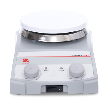 Dependable OHAUS Guardian 2000 Hotplates and Stirrers are ideal for education and other lab environments that require affordable, everyday fast heating and reliable stirring up to 15L. All three sizes offer simple knob control to easily adjust the heating and stirring functions. The durable housing includes a built-in support rod holder which accepts the optional support rod. Stirring models include PTFE coated stir bars.