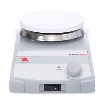Dependable OHAUS Guardian 2000 Hotplates and Stirrers are ideal for education and other lab environments that require affordable, everyday fast heating and reliable stirring up to 15L. All three sizes offer simple knob control to easily adjust the heating and stirring functions. The durable housing includes a built-in support rod holder which accepts the optional support rod. Stirring models include PTFE coated stir bars.