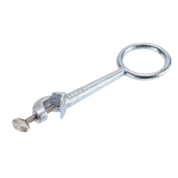 Distance from center of ring to center of clamp: 4.25" (108 mm). Plated. Attaches to support rods up to 0.75" (19 mm) in dia.
