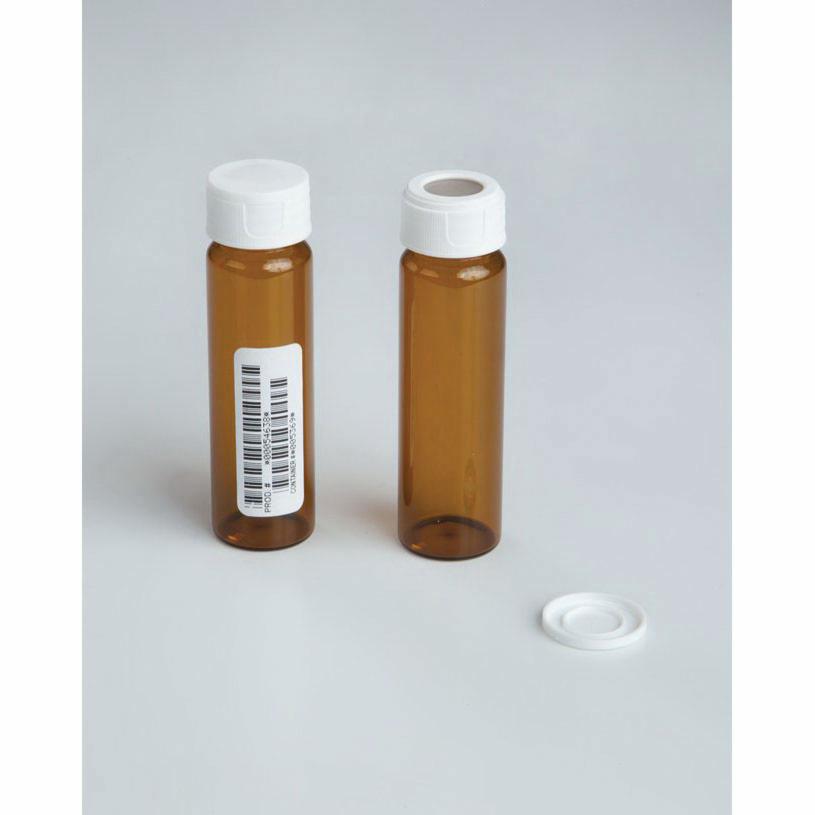 Vial, 40 ml, 28 OD x 95 mm H, Amber, Borosilicate Glass, 24-414 mm Closure, Natural Silicone/PTFE Septa, Clean Snap Cap, Processed Level, 44 ml Brim Volume, 0.125" Bonded Septum, For Volatile Organic Analysis, Fully Assembled