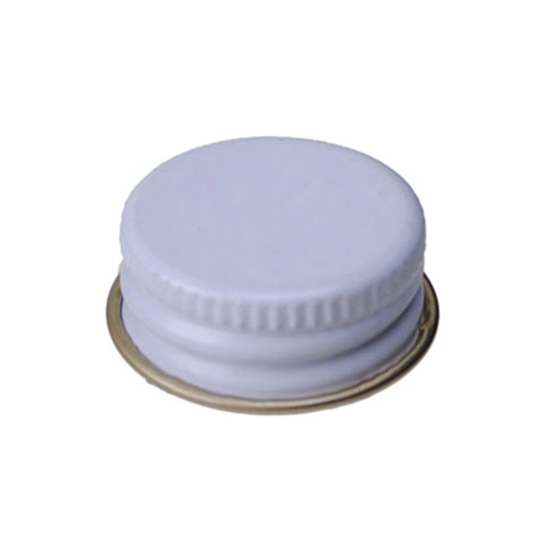 Screw Cap, 22-400 Closure Size, White, Tin Plate, Threads and Knurled Edge Surface Finish with Pulp and Poly Liner