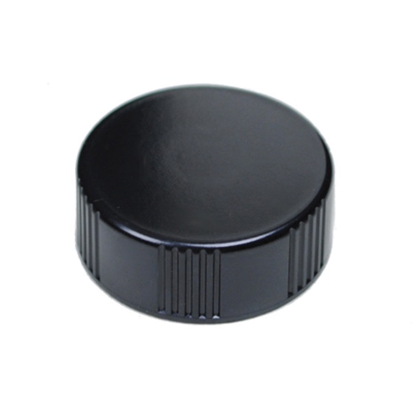Continuous Thread Cap, 28-400 Closure Size, Black, Phenolic, Rib Side/Smooth Top Surface Finish with Polyseal Cone Liner