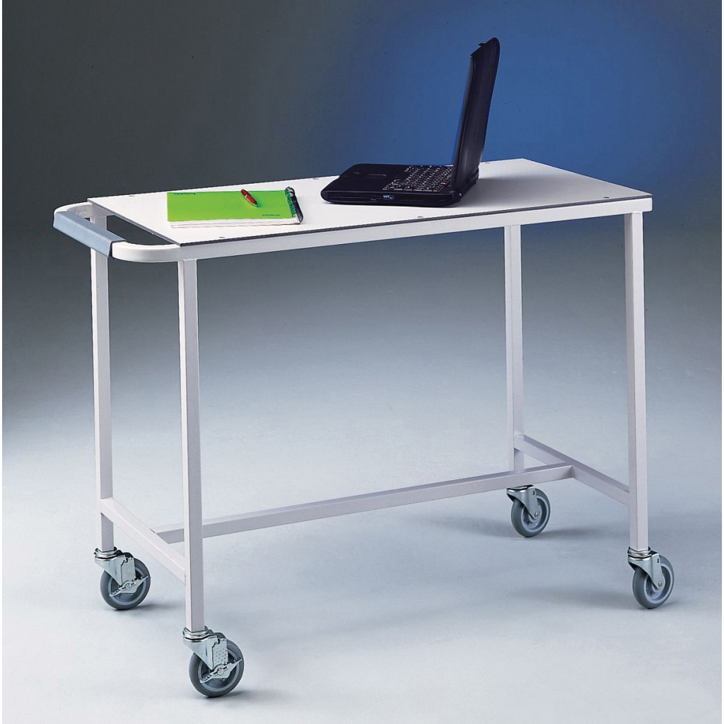 Instrument Desk, 400 lb Capacity, 42.13 L x 19 W x 31.63 H, Glacier White, 18 ga Welded Tubular Steel Frame, Phenolic Work Surface, Melamine Laminate, Epoxy-coated Finish, 4" dia Casters, With Support Bar