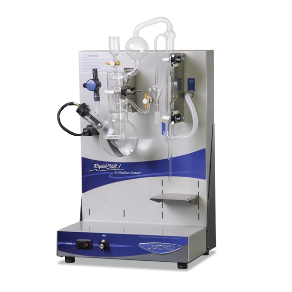 RapidStill I. Provides distillations for nitrogen determination. Designed for labs that are determining micro quantities of protein/nitrogen or performing one or two macro determinations per day by diluting and aliquoting the sample. Accepts digested samples up to 4 ml (maximum) and gives reproducible results in ranges as low as 1 mg/L Kjeldahl nitrogen. A one-piece still is mounted on powder-coated steel benchtop console that contains all operating controls. Each distillation takes only five minutes.