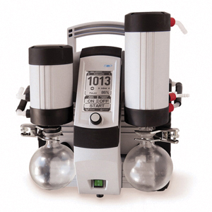 Vacuum Pump System, 423 H x 366 W x 294 mm D, PTFE-coated Diaphragm, PPS Head, FFPM Valve, Plastic-coated Glass Separators, 100 to 240 V, 50 to 60 Hz, 135 w, 1.7 A, 21 L/min at Atmospheric Pressure Flow Rate, Speed-controlled, Quiet Operation