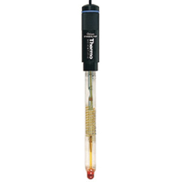 Combination pH Electrode, 12 dia x 120 mm L, Glass Body, 1 m L Cable, 0 to 14 pH Range, 0 to 100°C Operating Temperature, 0.01 pH Precision, Ceramic Junction, Waterproof BNC Connector Type, ROSS Internal Reference, Toughened Bulb Type