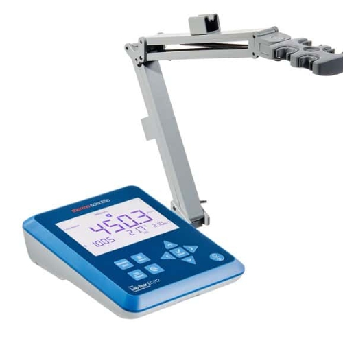 Measure conductivity, salinity or total dissolved solids with temperature using the Orion Lab Star EC112 conductivity bench meter. Featuring a large, backlit display for easy viewability and small footprint to save space, this meter is ideal for simplified, budget-friendly lab testing. Use the onscreen stabilizing and ready indicators to help identify when conductivity meter, salinity meter and TDS meter readings are complete. View active calibration logs with date and time, record key measurements using the 500-point data log with date and time, and output all logs to a printer or computer.