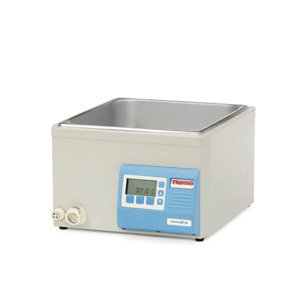 Water Bath, 10 L, 15.5 L x 15.1 W x 9.2" H Exterior, GP 10 Model, Stainless Steel Chamber, Epoxy Powder Coated Steel Cabinet, Digital Controller, Monochrome LCD Display, 800 w Heating Capacity, General Purpose, UL, CE Certified