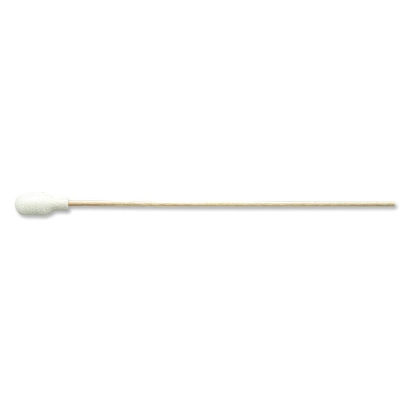Swab, 6" Overall Length, 0.3 dia x 0.93" L Tip, 0.10 dia x 5.81" L Handle, Foam over Cotton Tip with Wood Handle, Standard Tip, Non-sterile, For General Cleaning, Lint and Residue-free, Soft Smooth Tip