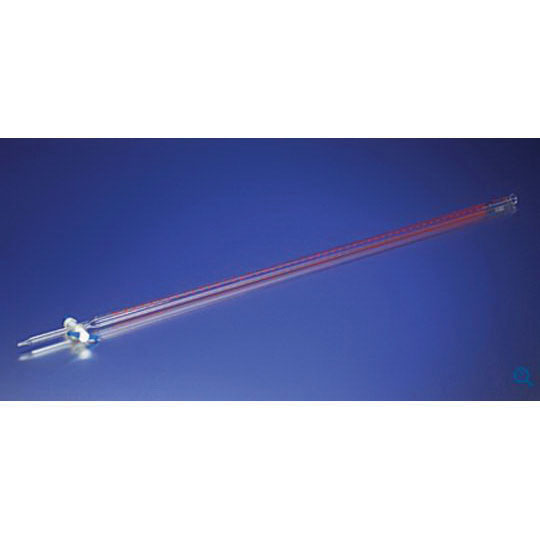 Buret, 10 ml, 9 OD x 560 mm H, Borosilicate Glass, 0.02 ml Tolerance, Serialized/Certified, Colored Scale, Class A, Graduated, 0.05 ml Graduation Intervals, with 2 mm Straight Bore PTFE Stopcock, Autoclavable, Non-sterile