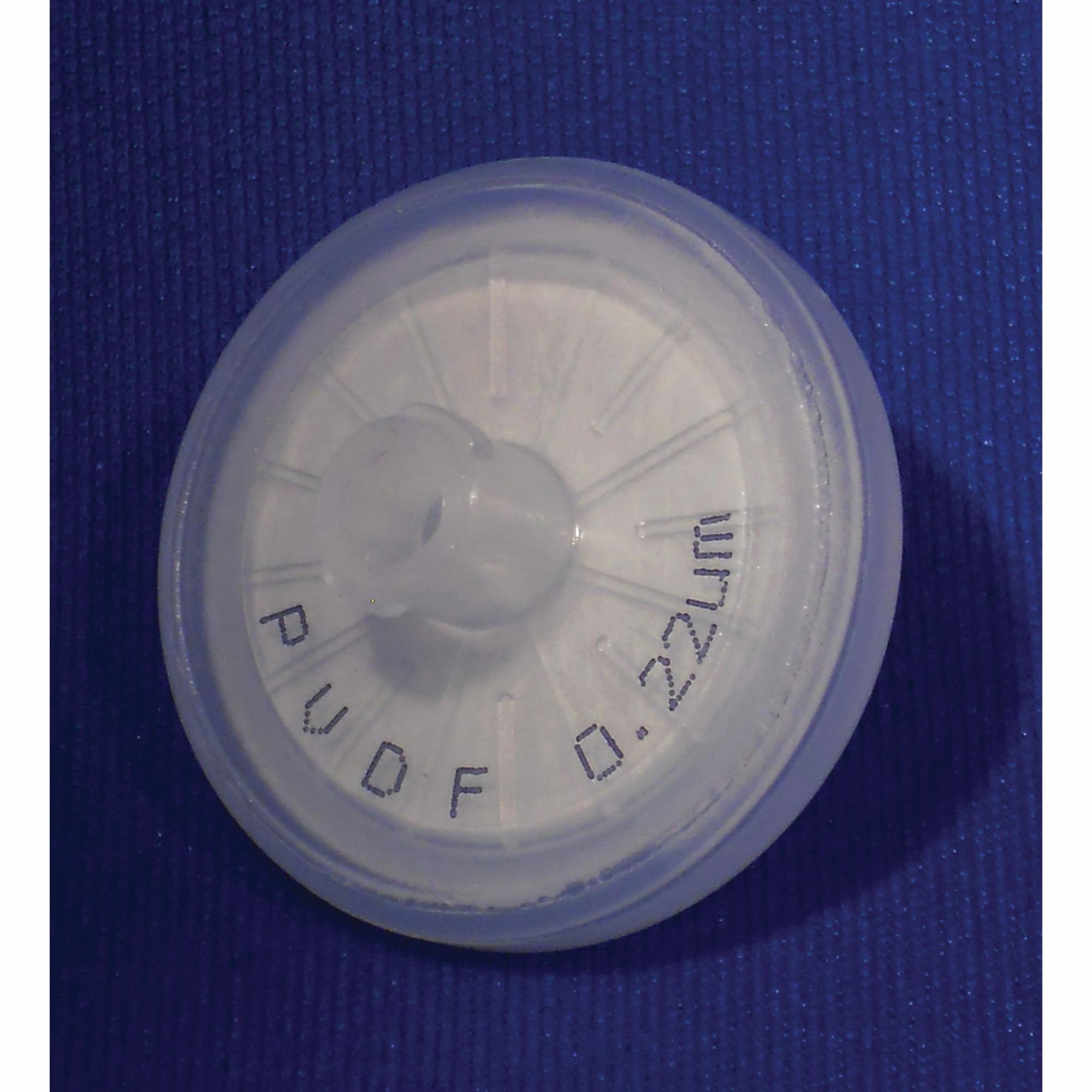 Syringe Filter, 25 mm dia, 0.45 µm Pore Size, 100 ml, Hydrophobic, PVDF, Non-polar & Protein Media, 4.08 mm2 Filtration Area, Polypropylene Housing, <100 µl Holdup Volume, <100 ml Sample Volume, Luer Lock Female Inlet