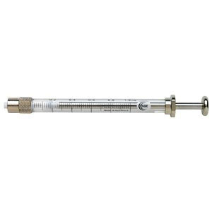 Gas Tight Manual Syringe, 500 µl, Stainless Steel, Fixed Luer Lock Needle, 3.257 ID x 8 mm OD Borosilicate Glass Barrel, 60 mm Stroke Length, PTFE Tipped Replaceable Plunger