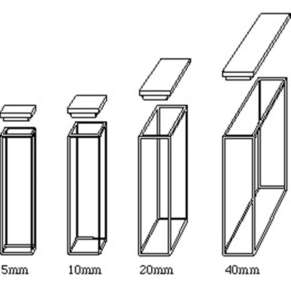 Fluorometer Cell, 10 mm Path Length, 12.5 L x 12.5 W x 45 mm H Exterior, 10 L x 10 mm W Interior, Optical Glass, Rectangular, 3.5 ml Nominal Volume, 4 Polished Windows, 334 to 2500 nm Range, For Fluorometers