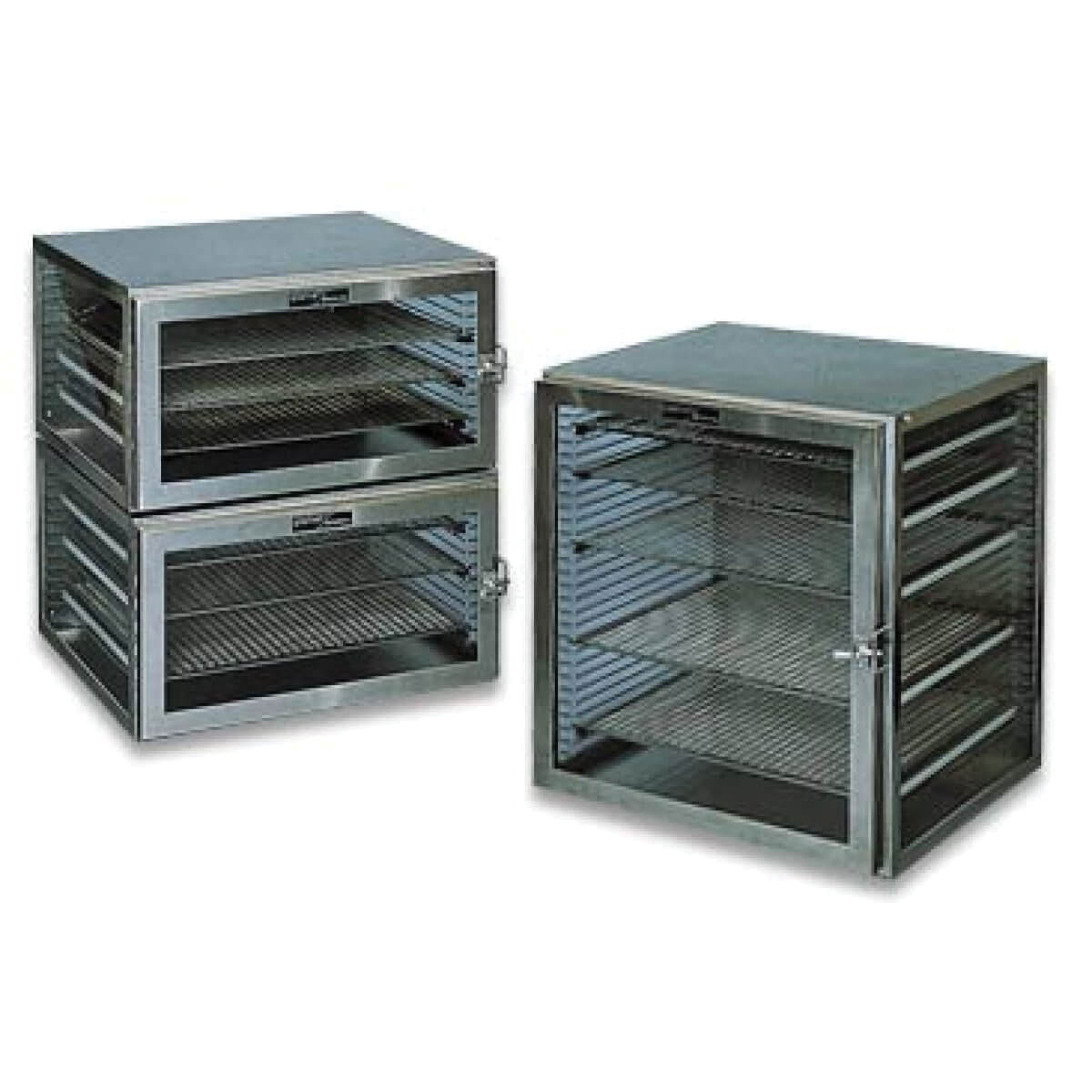 Static Free Desiccator, Large, 6.4 cu ft, 61 H x 55.2 W x 53.3 cm D, Clear, Glass/Stainless Steel, 2 Adjustable Shelves, 48.6 x 47.9 cm Shelf Size, 150°C Maximum Temperature, Shelf Spacing is Adjustable in 3/4" Increments