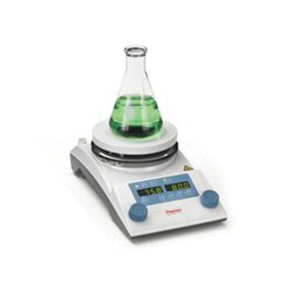 Increase your confidence in safety and accuracy with the sleek, low-profile Thermo Scientific ™ RT2 digital hotplate, which offers precise digital control with 0.1°C resolution and maximum temperature of 350°C. Experience fast heat-up time and an excellent heat transfer rate thanks to the tightly integrated structure of the heater and a ceramic-coated aluminum alloy top plate which provides excellent temperature uniformity and corrosion resistance while allowing for optimal monitoring of color changes in samples or media during operation.