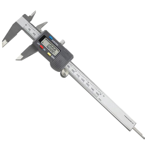 Traceable® calipers make length/diameter measurements three ways - outside, inside, and depth. Digital display models measure to 8" (200 mm). At the touch of a button units switch from inches to millimeters. Ergonomic design precision calipers are ideal for measuring the outside diameter of stoppers, the inside diameter of tubing, and the depth of vials. Depth bar extends from the end of caliper. Fine adjustment thumb roller improves reading speeds and position-holding lock screw sets length. Easy-to-read jumbo digital display is 0.33" high.